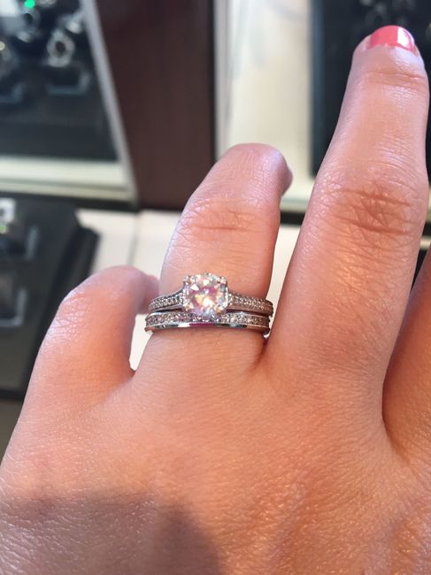I picked up my custom wedding band yesterday! It's so pretty. It has little diamonds from my grandmother's engagement ring in it. Anyone care to share wedding band photos?
