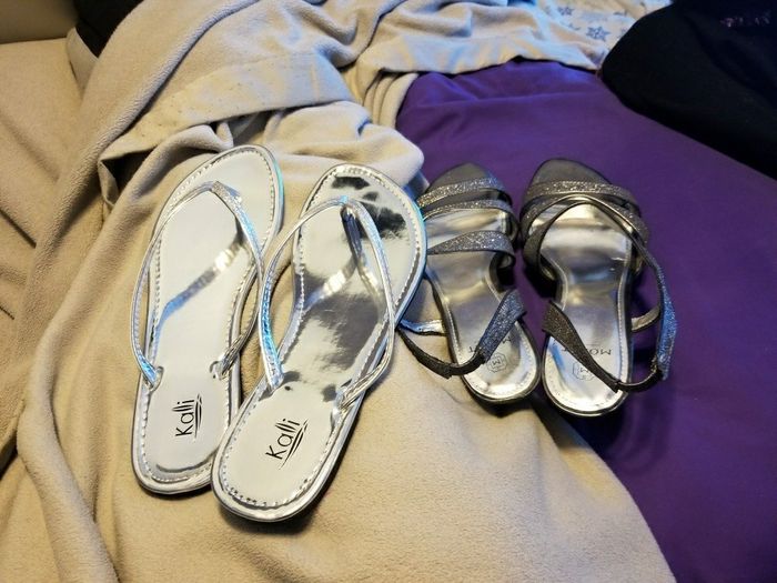 Having a difficult time figuring out what shoes I want to wear!! Flat sandals are the most comfortable and I won't have to take them off. But heels are so pretty! Can I see yours???