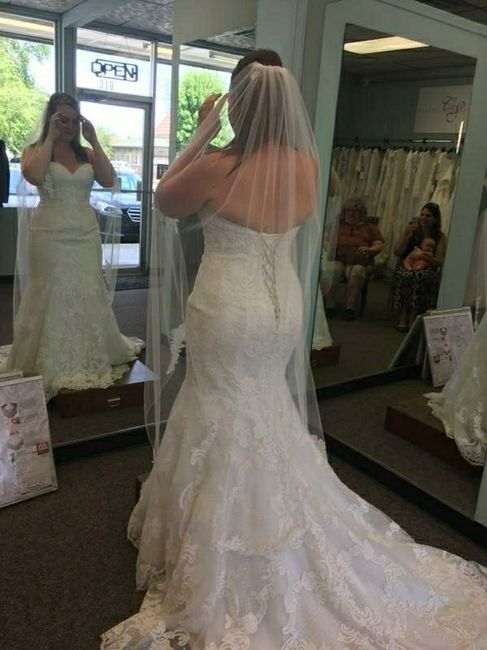 Hi ladies Has anyone else tried on this dress? If so I would love to see some photos as I cannot find a single bride wearing it ??! I’d love to hear your opinions of my pics. I tried it on and do like it as it’s really pretty but would definitely add...