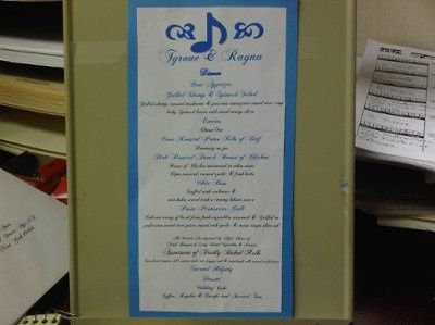 I custom made our menus lol! Tell me what you think. Our venue charges $2.00 per menu to customize menus. which would come out to about $200 and some change. so for $20 i got some nice white paper and $23 i got 500 pcs of turqouise card stock. Music...