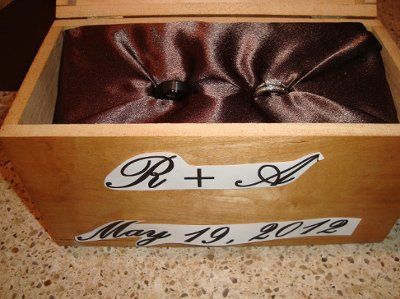 MY FH made a wooden box when he was in....9th grade? anyway we are using it for out wedding. I need to have words painted on by my FMIL but this is it so far! I'm so happy with it. What do you think? I know i prolly should have used champagne satin...