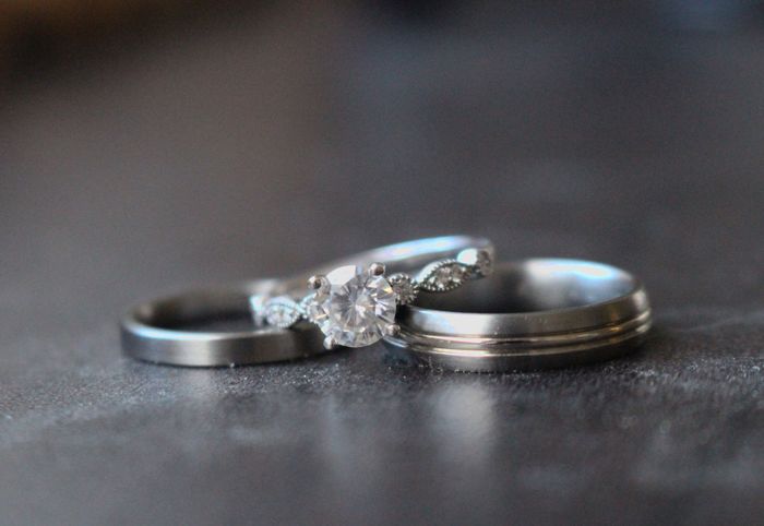 Our wedding bands arrived and we love them! My engagement ring is white gold and the band is titanium- FH’s band is titanium with a white gold inlay, so in some way they match! I’m so excited and can’t wait to wear them full time Let’s see yours!!...