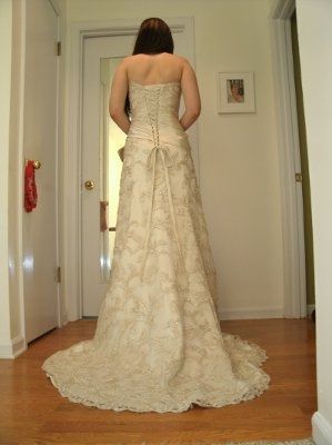 I chose this dress from BCBG last year. It's a ivory cotton jacquard floor length dress. I love it but everyone once in awhile I have my doubts and wonder if I should have bought/should buy a more traditional wedding gown. Any other brides out there...