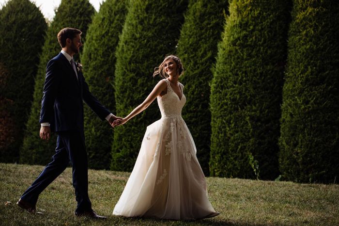 I finally hiked up the courage to purchase a dress after trying on what felt like millions, and now I have no idea where to go from here🙂 what color scheme will go with this dress?😩 getting married June 8th if that helps!