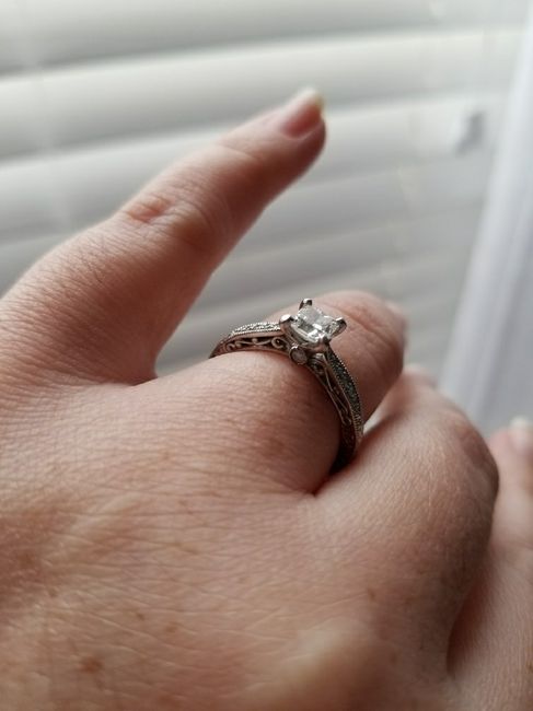 Post your engagement rings! With or without wedding bands I could look at them all day. I just gave mine up to get sized and it is taking a long time, 2 weeks thus far. Here is mine, taken right as I was dropping it off. (Excuse the blurry photo,...