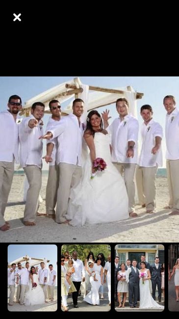Our wedding is very casual on the beach. All my girls will be in Malibu blue bridesmaid dresses and the men will be in khaki pants and a button up shirt.My dilemma is: should the guys wear malibu blue button up shirts to match and a white flower...