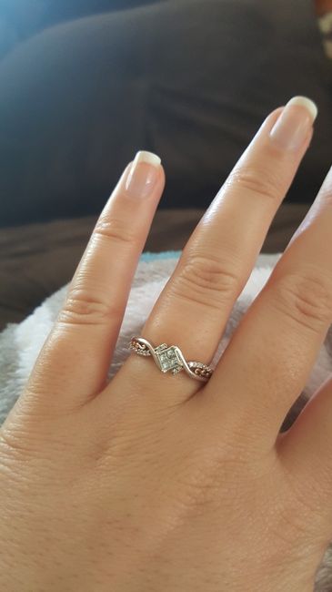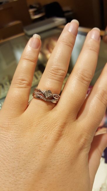So we got engaged two years ago, on our 5th anniversary, and the e-ring FH chose fit me perfectly! The center Stone is a pearl (my birthstone) with two yellow gold Celtic hearts (I'm a proud Irish girl), and two small diamonds next to the hearts....