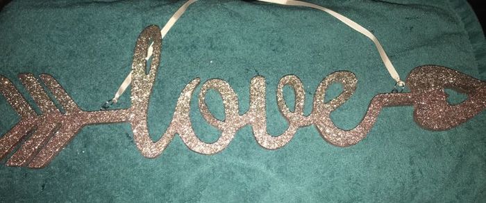 Went to Micheal’s and fell in looove with this sign but this is I don’t really know where to incorporate it! I was thinking hanging it in front of our table! The picture does it no justice it’s rose gold and I just added gloss to seal the glitter...