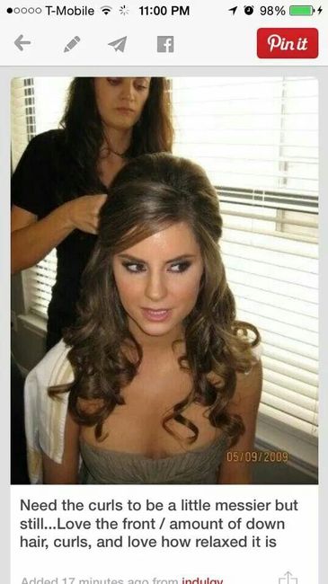 Wedding Hair Hello Ladies,What will you wedding hair look like? Will you be wearing it all up or down? This is similar to what my hair will look like. My dress is strapless with a sweetheart neckline. I was thinking of wearing it all up, but I really...