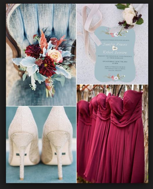 Hey guys! I am still unsure of the color palette for my wedding. It will be on December 23 of this year. Can someone help me out? I was thinking of a light blue shade, maybe a dusty blue but I don't know what goes good with it. I want FH to have a...