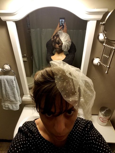 I'm having a hard time trying to decide what color shoes for my big day. My dress is black and white, pin up style. I was thinking red for the ceremony then black for the reception. Flats are a must. I don't wear heels much anymore. Here's a pic of...