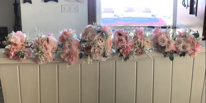 First round of bridesmaid bouquets are done!! I’ll probably tweak them a bit here and there as I see inspiration around, but I’m pretty pleased so far!! Next is my own bouquet and then gazebo decor. Let me see everyone else’s DIY floral!