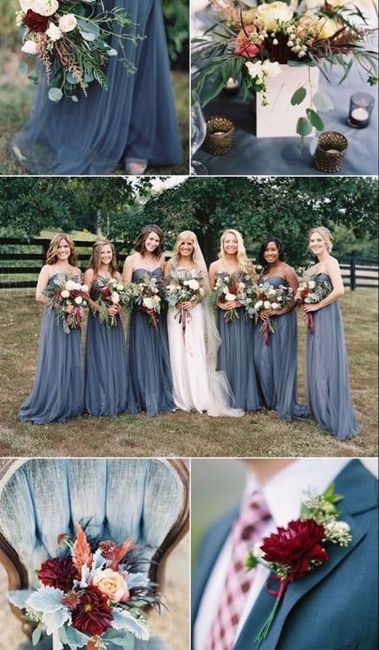 I love blue and my fiance loves burgundy. We both like silver. I don't know how to bring blue and burgundy together for a late summer wedding in the month of August. Here some ideas I found. Any advice will be appreciated.
