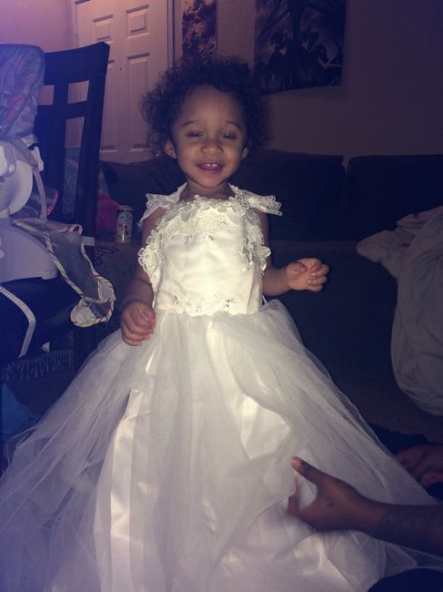 My baby's dress came in and she looks so darn cute! I know most brides wouldn't want anyone else wearing white but luckily I'm not and I want to share this day with our daughter!