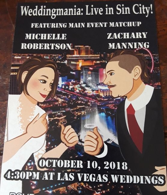 We wanted to incorporate our love of wrestling into our wedding and we decided to do that with our invitations. I am very happy with how they turned out and I think they are perfect for our casual microwedding. I cut off the bottom of the picture so...