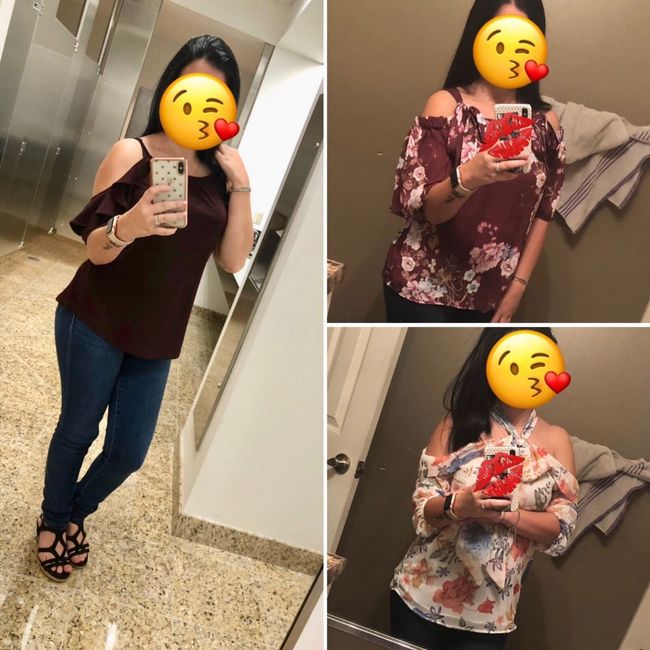 So we are getting our engagement photos done October 7th at a park that has tons of trees and flowers. Hoping it’ll somewhat be turning into fall (I’m in Charlotte, NC). I’m just trying to decide which shirt to wear for the photos? I love them both!!...