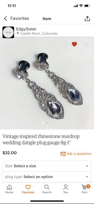 I have gages. I love them, my fiance does not. For the wedding I can't decide if I wanna wear normal earings or get cute gages. I'm about a size 6 so nothing extreame. Are any other brides thinking of keeping their gages in on their big day?
