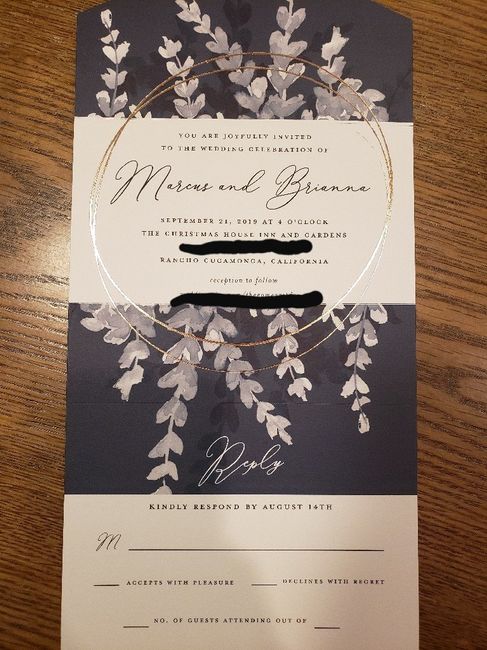 I know a lot of people, including me, were/are curious about the all in one invites and I know a few people posted about theirs, but I figured another example couldn't hurt. Ours just came in and I love them! I'm a tad annoyed that the blank after...