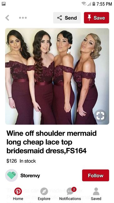 I'm starting to look into ideas for bridesmaid dresses. I want the dark red wine color in different styles. I have seen a bunch. Can I get see some pictures from your weddings or ideas that y'all may have that i haven't seen. My girls are various...