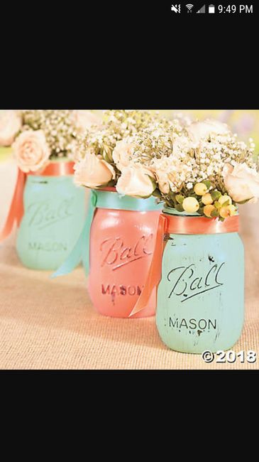 Worked on painting our chalk paint mason jars for centerpieces! I feel like the picture with the flash shows the colors a little better. For anyone doing them I suggest 3 good coats of paint and then a touch up. Use the black sponge paint brushes...