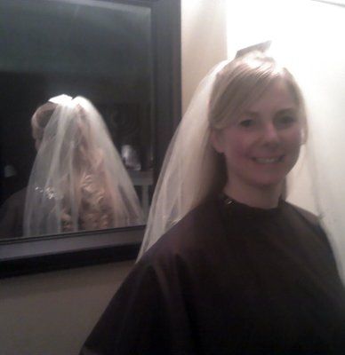 these aren't great pics. MOH took them on the phone and tried to get the mirror in the background to see the back. I'm also wickedly sick and the MUA didn't come tonight to airbrush the hell out of me. I'm pretty pleased with the hair though. I don't...