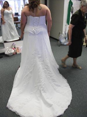 I went and tried on dresses today. I'm still in love with the first dress I tried on. My mom, MOH and one of my BM came with me. I also got pics of my MOH in the BM dress. They would only let me take pics of my favorite. Let me know what you think. ...