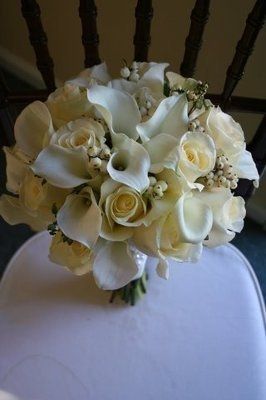 My colors are Davids Bridal Pool, silver and white What kind of flowers would go great?
