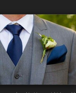 Fiance and I are getting married in the middle of the woods and he wants to wear a suit and ideally would like to wear something other than black. Problem is, I have no idea what color suit would look good with my dress aside from black! Would gray...