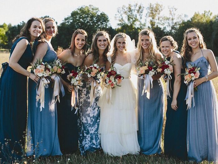 Hi everyone! Just wanted some opinions from people more fashion forward than myself. My fiance and I are getting married on 10.05.19. Our wedding colors are wine, navy, and blush. I will have four bridesmaids and two maids of honor (I couldn't choose...