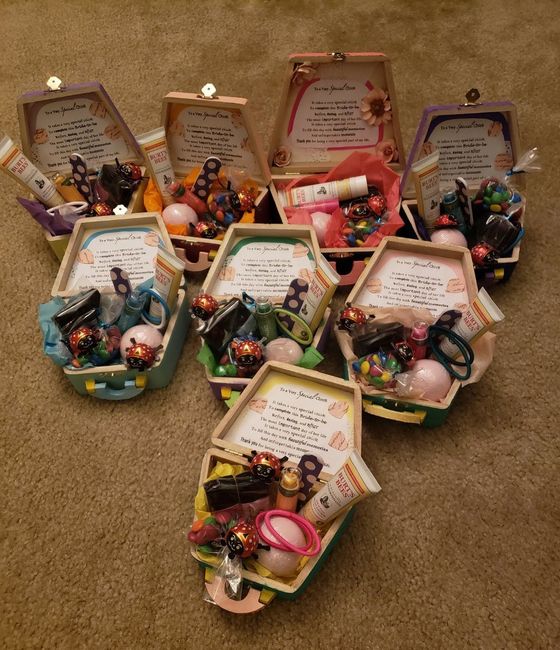 I some how ended up with 8 bridesmaids (if everything works out in the end lol) and I wanted to do something personal and special for each. I spent the better half of two months designing and painting their bridesmaids boxes. I added some treats and...