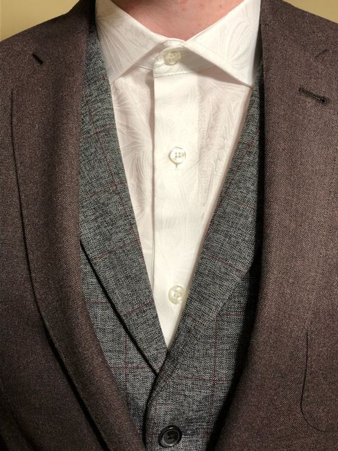 My FH got his suit this weekend and I’m so excited about it. We got the entire 3-piece suit plus the dress shirt for under $125 through a great sale. What do you all think!!?