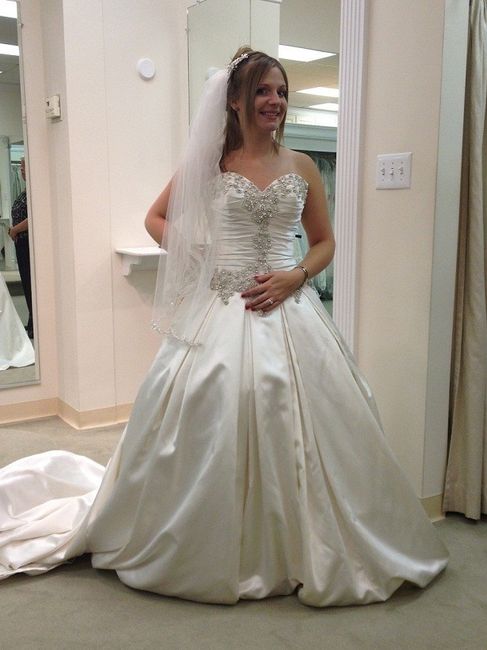 I continued my search in finding The Dress this past Saturday. So far, I've tried on about 30 dress, but only one made me cry. I LOVE this dress, as does my MIL and 3 of my bridesmaids, but it's blush. I may regret not wearing ivory, so I will track...