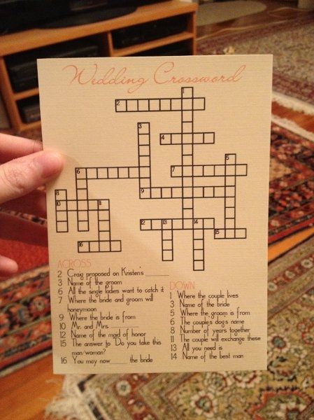 So I haven't designed the front yet because I'm not sure exactly what to include on it... but tonight I was bored and designed a cute little crossword puzzle for the back of our program I also had a toooooon of paper left over from our invitations...