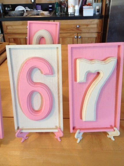 Okay so these are going to be my table numbers. When you look at them, imagine the number attached in the center, not at the bottom. (I just can't glue them until I paint first) I am going to paint them a combination of an off white and a peachy...
