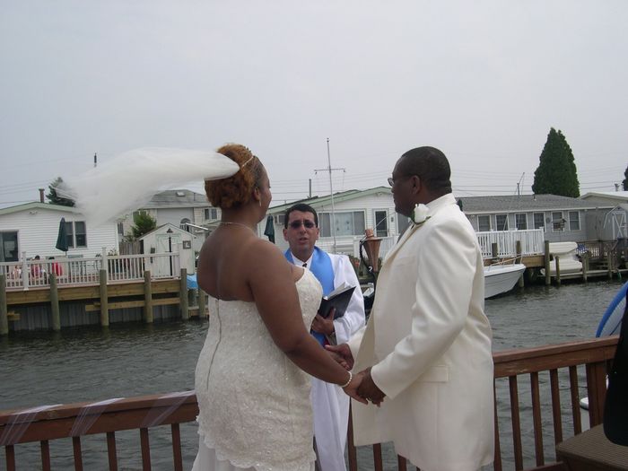 Here's a Hump Day Funny. It's a picture during my wedding ceremony in 2004. Told y'all it was small, but it was perfect. Only thing is that it was soooooo windy that day. Most of my pics have my veil looking like this. And there was one of those...