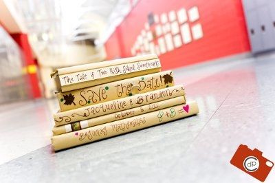 Hey all! I'm marrying my school sweetheart, he was a football player and i was a cheerleader (very cliche i know!) I want to do unique save the dates and use our high school photos but I have noo idea what to do! Any ideas would be much appreciated!!...