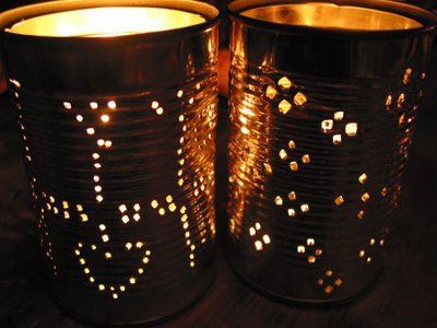 My DIY for today was to make some tin can lanterns, like these. I don't have a picture of the ones I made yet. I'll post later. We have an outside area at our reception, and I thought they would make good centerpieces for outside. I also made some...