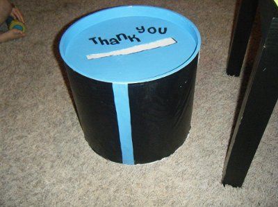 I got the advil bucket from work for free. So the before picture is on the left and the after picture is on the right. I feel like it still needs something. Beading? Another word? Date? Its my card box and I know it's least of the worries just want...