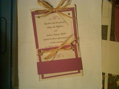 A girlfriend of mine is making our invitations (her own little DIY project since I am terrible at it!) and this is her finished product! What do you think? (I have a rustic themed wedding of violets/purples & Ivory)