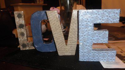 I am making the word LOVE for my cake table to stand in front of my cake and I came up with this idea...I love the way it turned out! The store didn't have all the letters so I have to go back and get the other 2 letters when they get them in