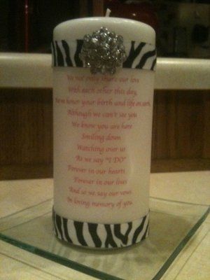 I told my fh about doing something that memoralize the people in our lives that our passed on. He was so against it, bc he says it is suppose to be a happy occassion. This is one thing that he has no say so in. There is no chance in hXXX that I'm not...