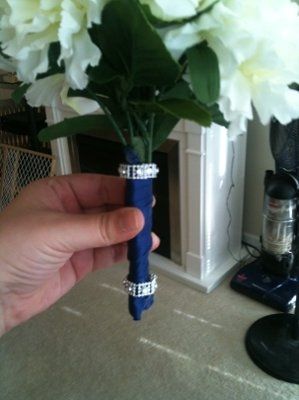 I can't believe it, but I did it! Woo hoo! My finger tips are covered in super glue and hot glue and my hand hurts from cutting all the wires, but my tester bouquet is complete! :-) I really like it. I'm glad it's just the tossing bouquet, but it's...