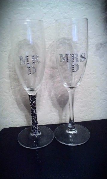 Took me about a week and 336 crystals to finish one of my toasting flutes. I thought this would be faster than blinging out my wedding shoes but it sure hasn't been. I'm amazed at similar flutes I've seen sell for $85 a pair. When mine are done it'll...