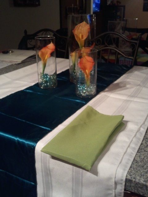 We are on a tight budget....and I wanted to try making them on my own. What do you think? No Bow? Bow? Our colors are primarily Lime Green & Teal. Peacock is our theme. They are real touch Calla Lilies which are my preferred flower for the wedding....