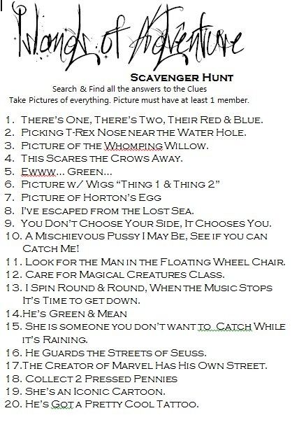 I posted a thread on Tuesday about going to Islands of Adventure and wanted to do a Scavenger Hunt. https://www.weddingwire.com/wedding-forums/needs-your-help/9f83e140e5b7dfe0.html I wanted to see if you guys could help. I have some things writen down...
