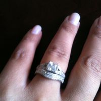 4982 days agoMy wedding band came in, and I feel a little odd with it on. I might like my e-ring alone better?? Anyone else feel that way at first then change your mind? My e-ring has to be re-coated as it has faded since we got engaged, so maybe the difference...
