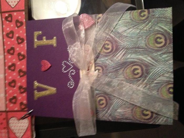 I am not crafty and have no patience but I was inspired by some of the posters to make a card book of our engagement cards. Since I'm snowed in I thought I'd give it a go lol