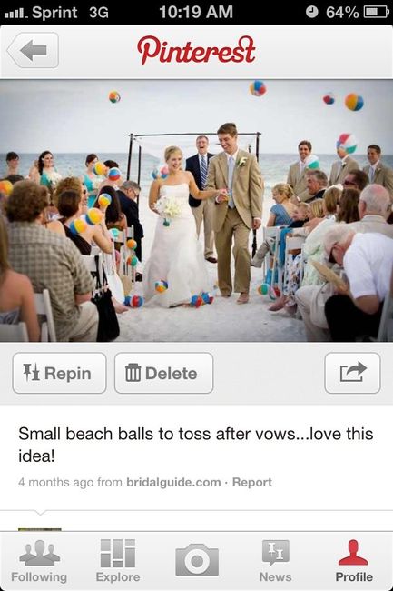 Since we are doing a DW we are thinking that having small beach balls thrown into the air rather than bubbles, sparklers, etc would be a super cute idea after weve been announced husband and wife. Does anyone have any suggestions on where we can buy...