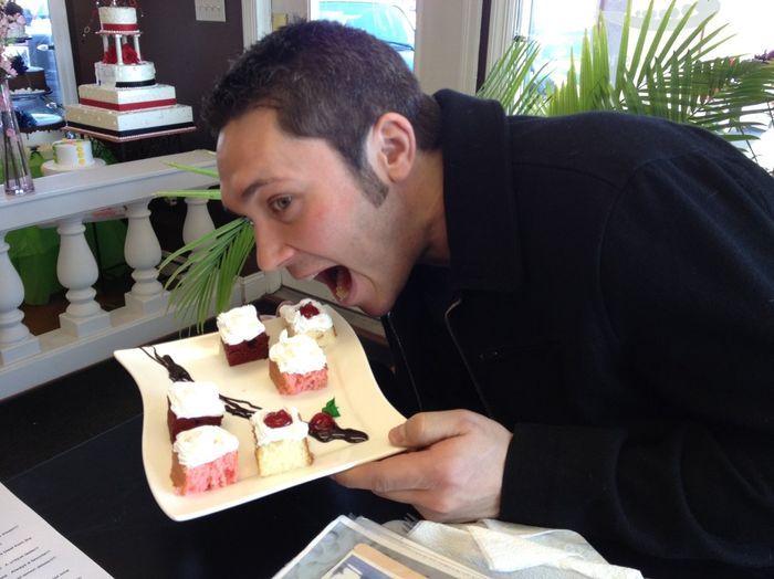 The first pic is the cake and the second is the topper we plan to use!! FH loved this part of wedding planning bc he got to taste all the cake (the third pic)!!