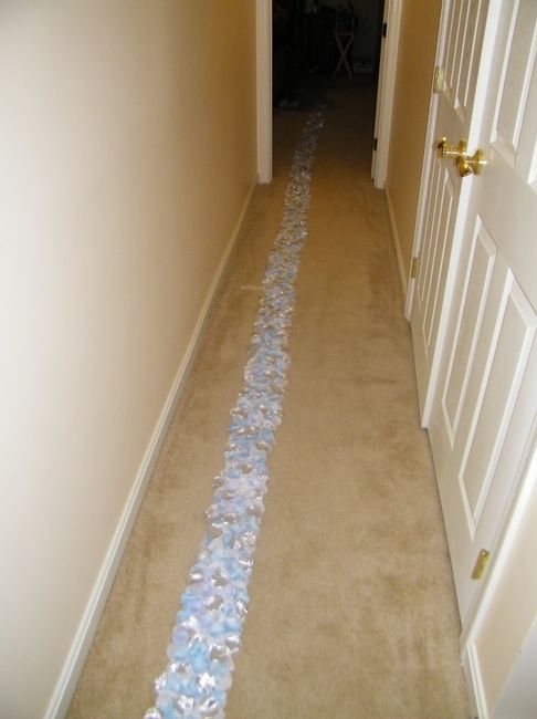 It's 36 feet long and I've still got to get the other side done, but I'm done working on it for today. I ended up putting down a bed of white roses before scattering the blues and silvers. I hot glued everything to the tulle on the back of a cookie...